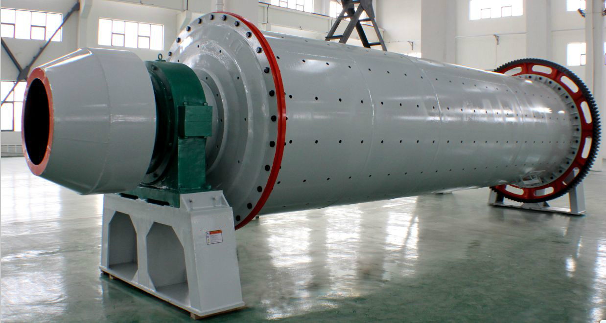 本机为卧式筒形旋转装置,外沿齿轮传动,两仓,格子型球磨机。物料由进料装置经入料中空轴螺旋均匀地进入磨机第一仓,该仓内有阶梯衬板或波纹衬板,